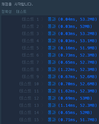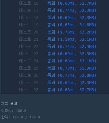 이번 문제는 가장 쉬운 난이도 인 것 같다. 문제요구사항 정리 부터 테스트 채점까지 5분 걸린것같다.