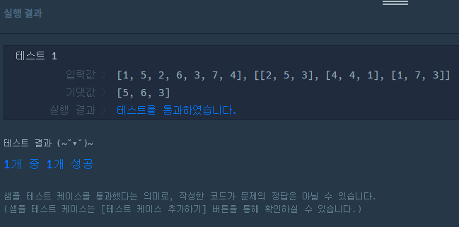 배열 array, [i, j, k]를 원소로 가진 2차원 배열 commands가 매개변수로 주어질 때, commands의 모든 원소에 대해 앞서 설명한 연산을 적용했을 때 나온 결과를 배열에 담아 return 하도록 solution 함수를 작성해주세요.
