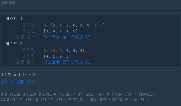 | 5 | [2, 1, 2, 6, 2, 4, 3, 3] | [3,4,2,1,5] |
